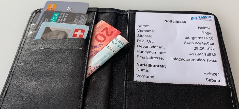 Du kannst den Notfallpass vor dem Event bei uns abgeben, Deine Kollegen informieren, wo Du ihn versteckt hast oder deponierst ihn an einem Ort, wo er gut zu finden ist.
